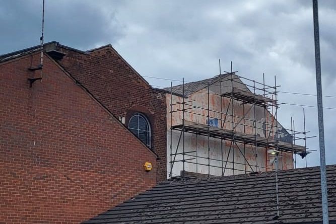 Er zijn voorbereidingen getroffen voor het stucwerk, de banken zijn afgedekt. En sinds eind maart 2024 is er door een stukadoor begonnen met de muren.